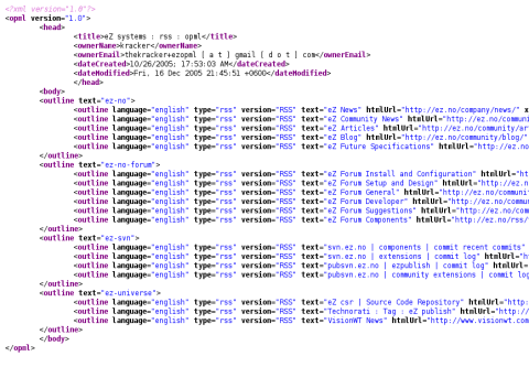 eZ Ecosystem Syndicated News Feeds OPML
